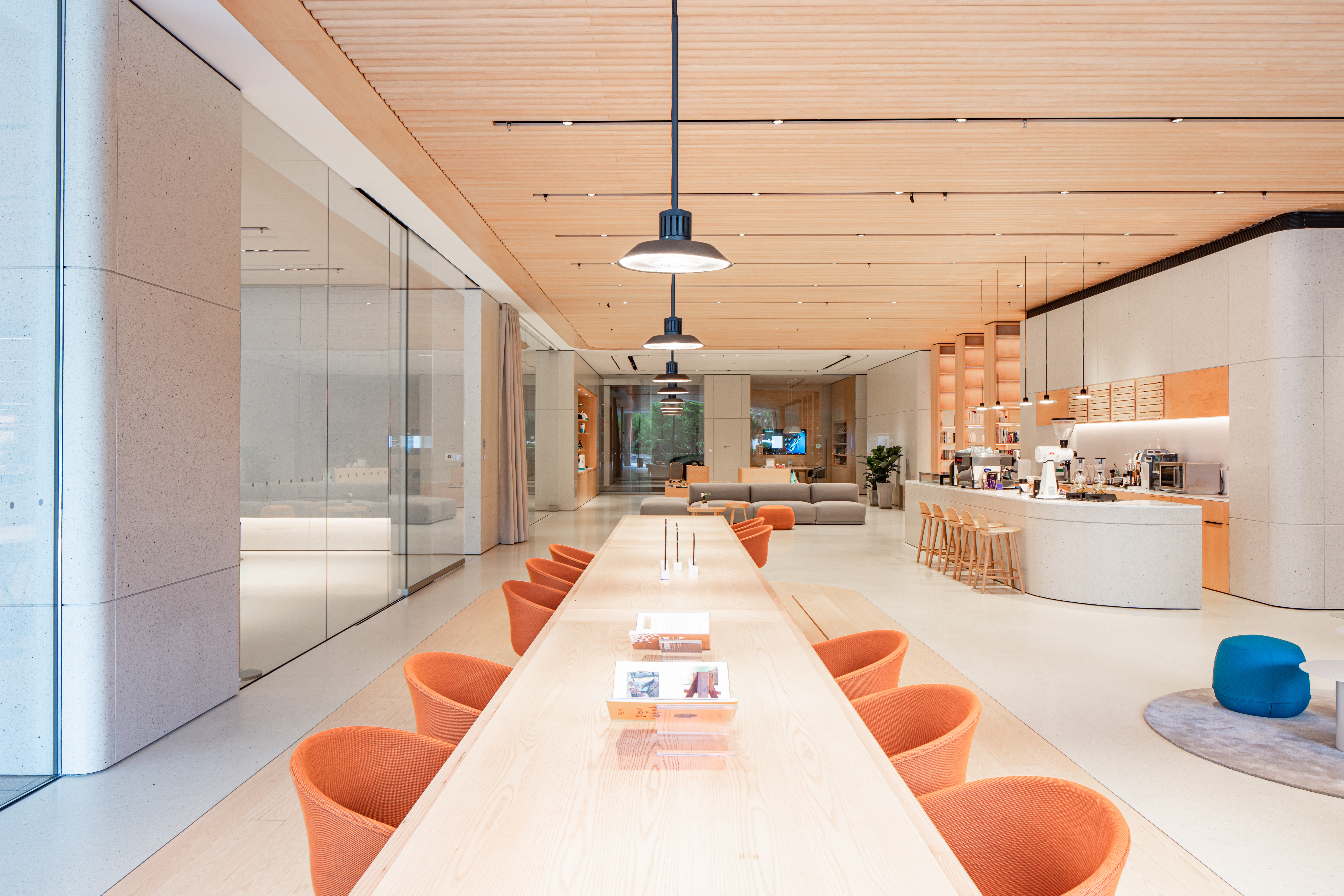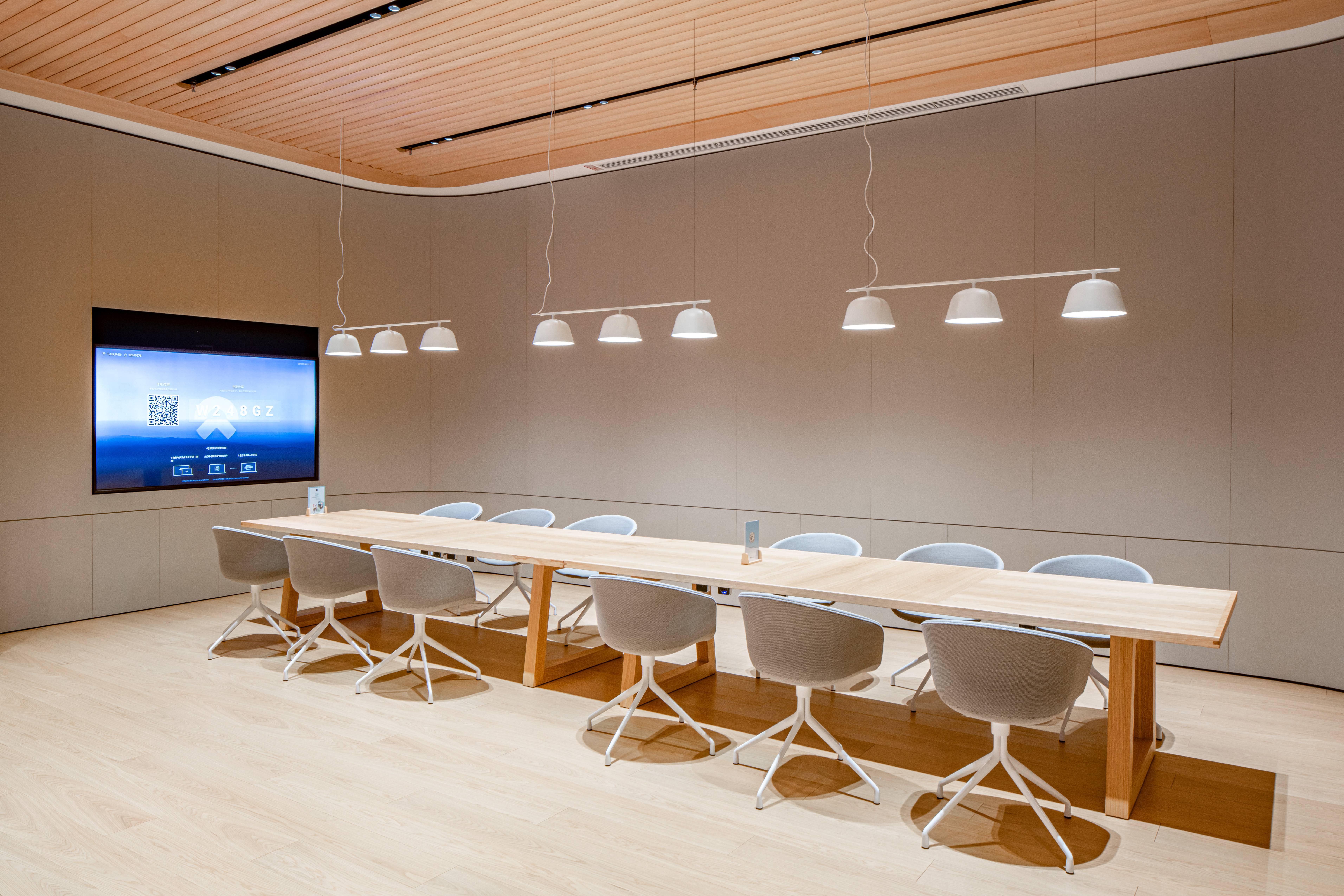 本案室内设计还大量运用了原木色调的装饰板,意在打造一个温暖、亲切的亲民购物场所,照明设计则利用隐藏的LED柔性灯带对原木装饰板洗亮,突出这一设计元素。