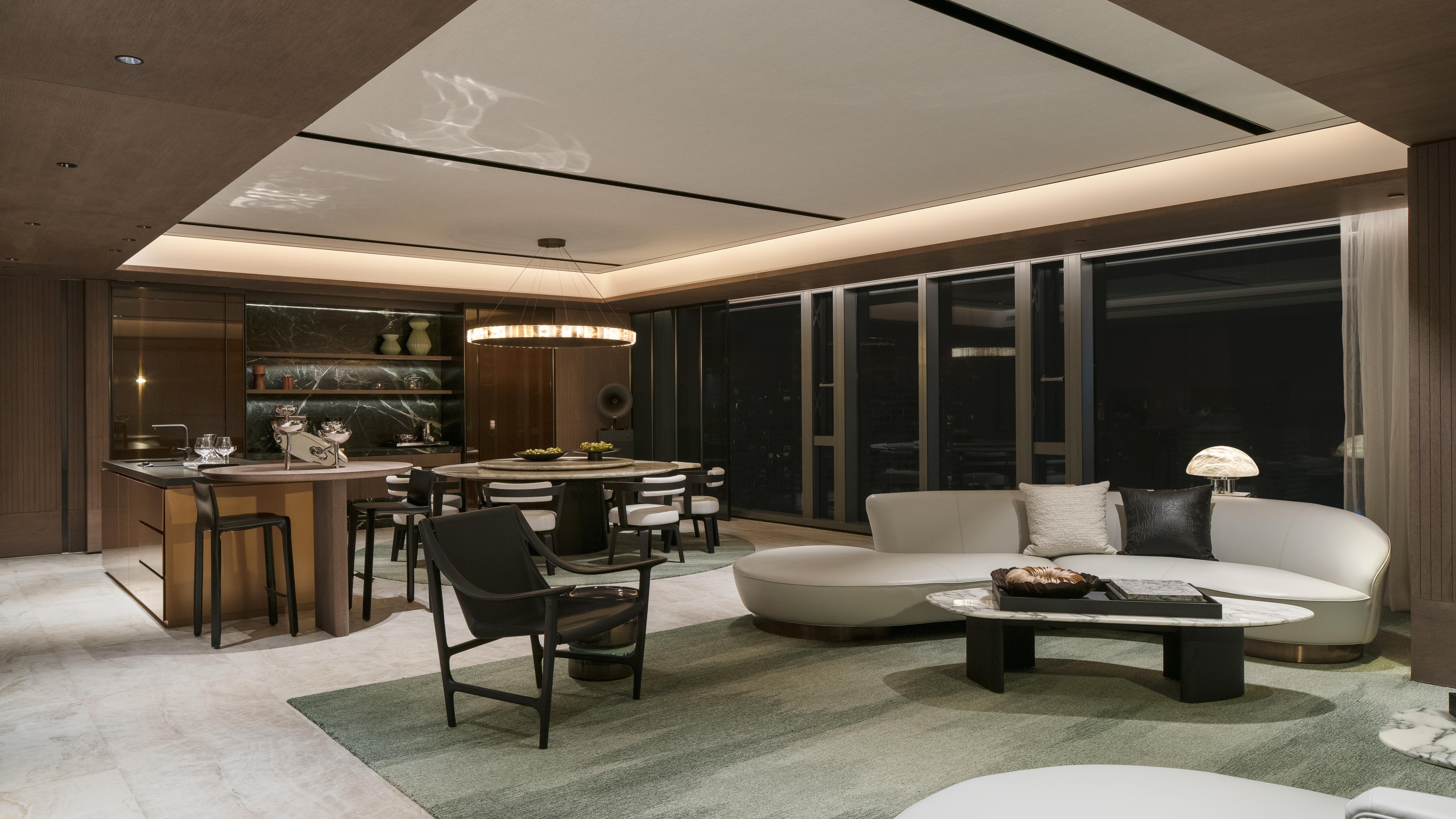 华润杭州中心是位于杭州市下城区的双轨交高端公寓项目,打造了一个集现代化与舒适性于一体的居住空间。项目照明设计的核心理念是创造一个视觉上美观、体验上舒适的高端居住空间。